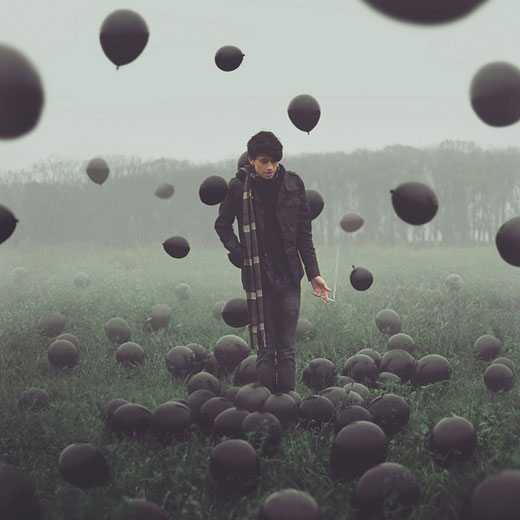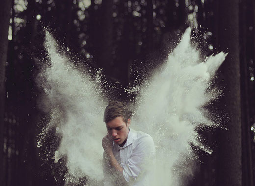 Thompson captures his images with a dreamlike lens, and most of his works are self portraits that remit shock but retain a true mysterious magnificence. It is hard to believe that this former pizza delivery boy picked up a camera and drew real sophistication. As his own style quickly developed, his interpretation grew to become more conceptual. ‘I’m inspired by music, art, and my environment,’ – and these elements are always visible in his work. Artists such as Zdzisław Beksiński, a celebrated Polish painter, and Francesca Woodman, who has her own collection of eerie self portraits, have influenced Thompson’s photographic exploits.