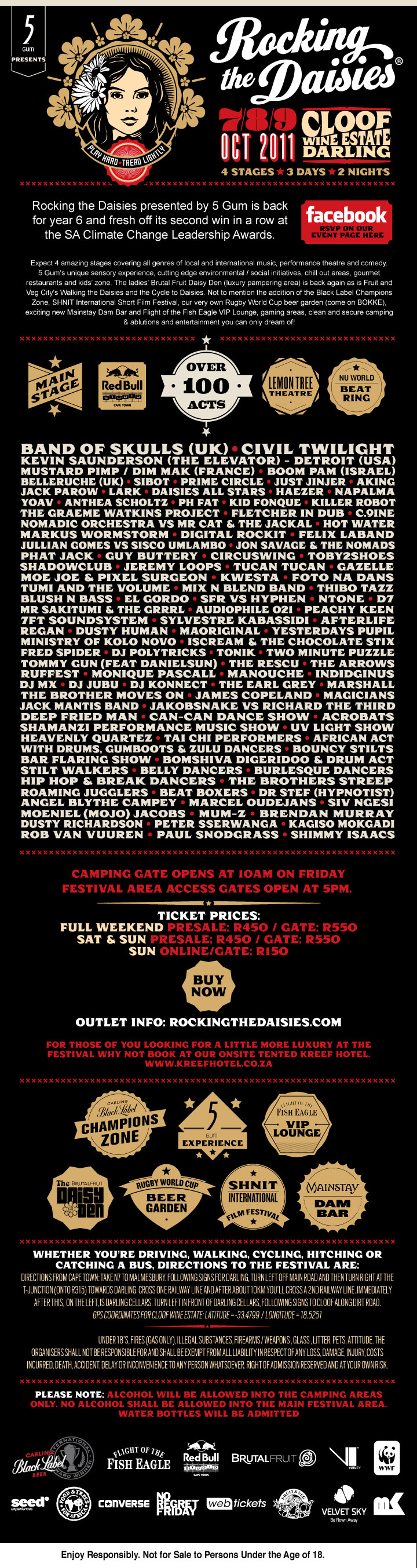 With the announcement of the finalized line up for the much anticipated Rocking the Daisies, we proudly present to you this year’s line up for what is sure to be the best RTD yet.