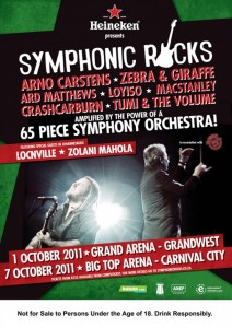 Presented by Heineken® in association with 5FM, this year’s ‘Symphonic Rocks’ are creating a cross-genre mix from rock to pop, adult contemporary, R&B, hip hop and electro and some of South Africa’s most popular artists. You can expect a 65 piece Symphony Orchestra, Arno Carstens, Loyiso, Ard Mattews, CrashCarBurn, Zebra and Giraffe, Tumi & The Volume and last but not least MacStanley. They’re the brains behind this whole event. The country’s top- selling group of 2010, Loncville, will be part of the ‘Symphonic Rocks’ Johannesburg’s line-up as will Freshlyground’s extraordinary vocalist, Zolani Mahola.