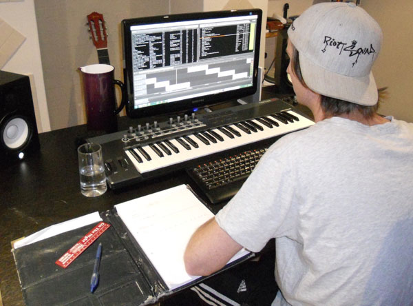 Filled with excited anticipation, I showed up at Mike and Kyle’s house on a gloomy autumn afternoon, with my laptop and trusty notebook at the ready. The Riot Squad engine room, as it were, is located in Mike’s bedroom where he has everything necessary to produce. First and foremost, no producing can be done without a high-speed computer. Throw in a Nocturn 49 Novation Midi Keyboard and some Yamaha HS50M monitors and we’re good to go. Program wise, Riot Squad have been producing on FL Studio (previously ‘Fruity Loops’) but are looking to make the transition to the more respected Cubase. In the production world, FL Studio is looked down upon like an ugly stepsister. To get world wide respect, it’s pretty much vital that you use Cubase. Whilst technically trickier to negotiate, it delivers a far brighter sound due to its vastly superior algorithms. It’s all very scientific.