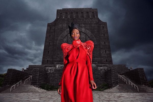 This fashion story plays on the bloody past of South Africa and highlights the new society that came into being after the country became a democracy in 1994. The title, The 33rd Ray, refers to the architectural feature of the Voortrekker monument, where sunlight passes through an opening of the roof on the 16th of December each year. This ray of light adds to the 32 symbolic rays that can be seen on the surface of the ground floor. Symbolically, the architect Moerdijk intended for the 33rd ray of sunlight that shines down on the stone in the midst of the abyss to publicly highlight the creation of a new civilization in Africa. In this fashion story the model represents the 33rd ray, signifying the new democracy of South Africa.