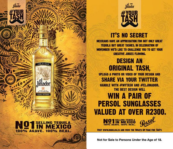 Be it in the style of the ‘Handlebar’, the ‘Fu-manchu’ or the ‘Pencil’, this Movember el’Jimador challenges you to create your own unique tash and stand a chance to win Persol sunglasses valued at over R2300. Read on to find out how to win!