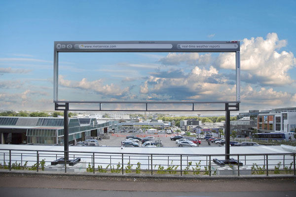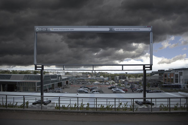 Popular New Zealand weather forecaster MetService has collaborated with Y&R NZ advertising agency to create a structure that frames real-time weather. The billboard is designed to look like a web browser while giving a visual of actual weather conditions to emphasise that MetService is the most reliable forecaster in New Zealand. The clever ad has received 30 000 Facebook likes, featured on Reddit’s front page and been named BuzFeed’s ad of the month.